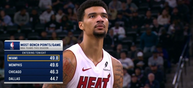 Đài truyền hình đưa ra dữ liệu: Trước trận đấu hôm nay, các cầu thủ vào sân thay người của Heat ghi trung bình 49,8 điểm mỗi trận trong mùa giải này, đứng đầu giải đấu.