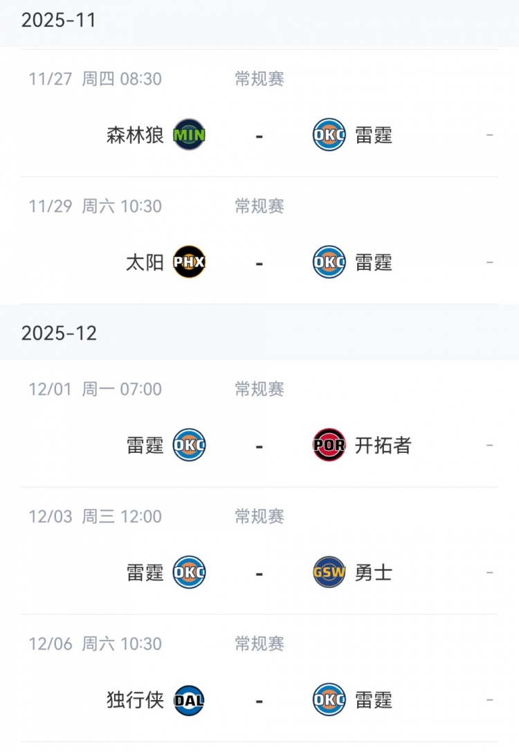 Đối thủ của Thunder trong 5 trận tiếp theo như sau: