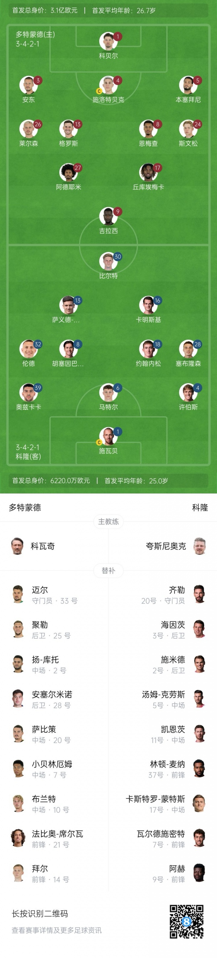 Đội hình xuất phát của Dortmund: 1-Kebert, 26-Leersen, 3-Anton, 4-Schlotterbeck, 5-Bensebaini, 24-Svensson, 13-Gross, 8-Nmecha, 27-Adeyemi, 17-Chukuemeka, 9-Gilasi